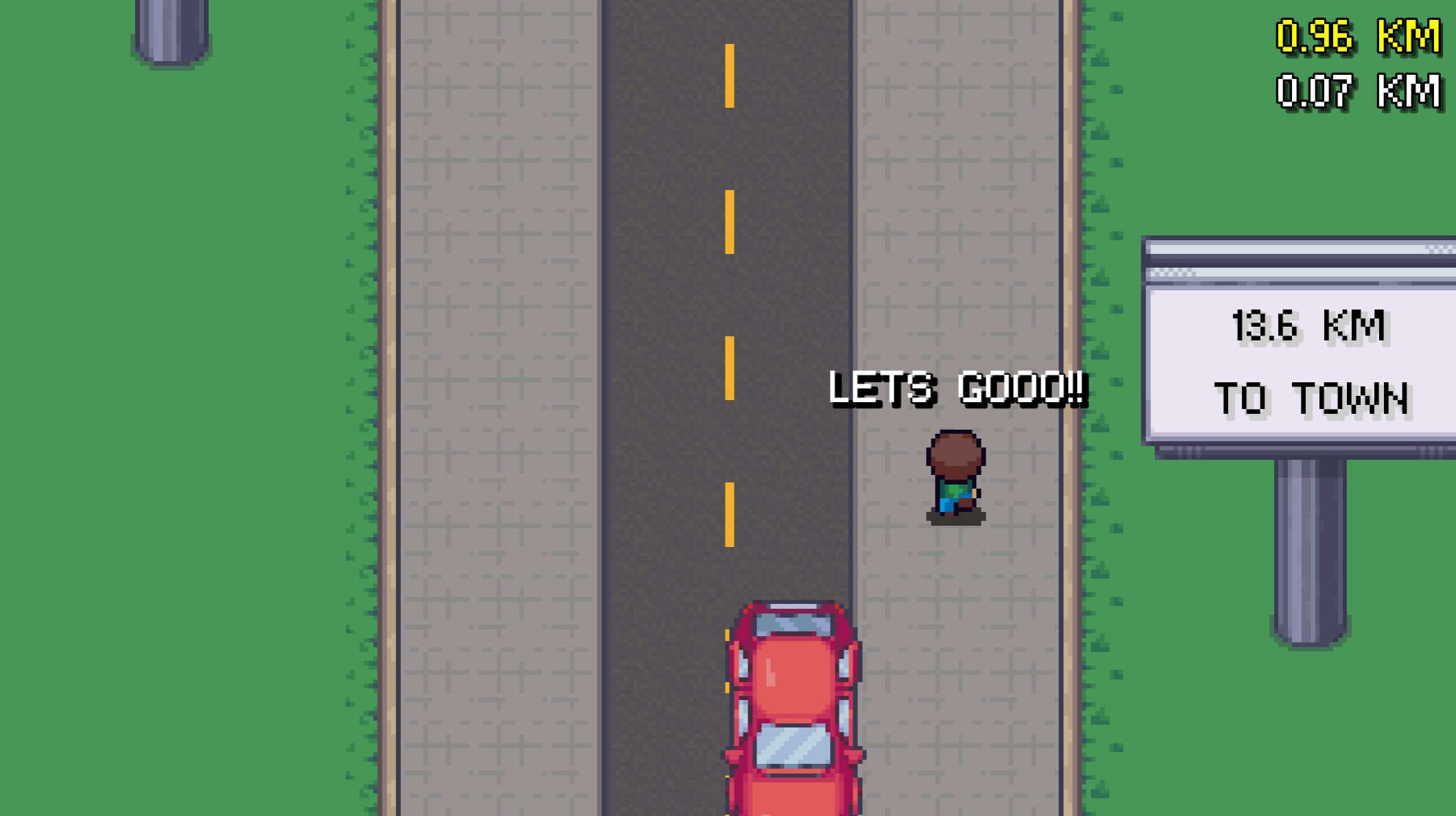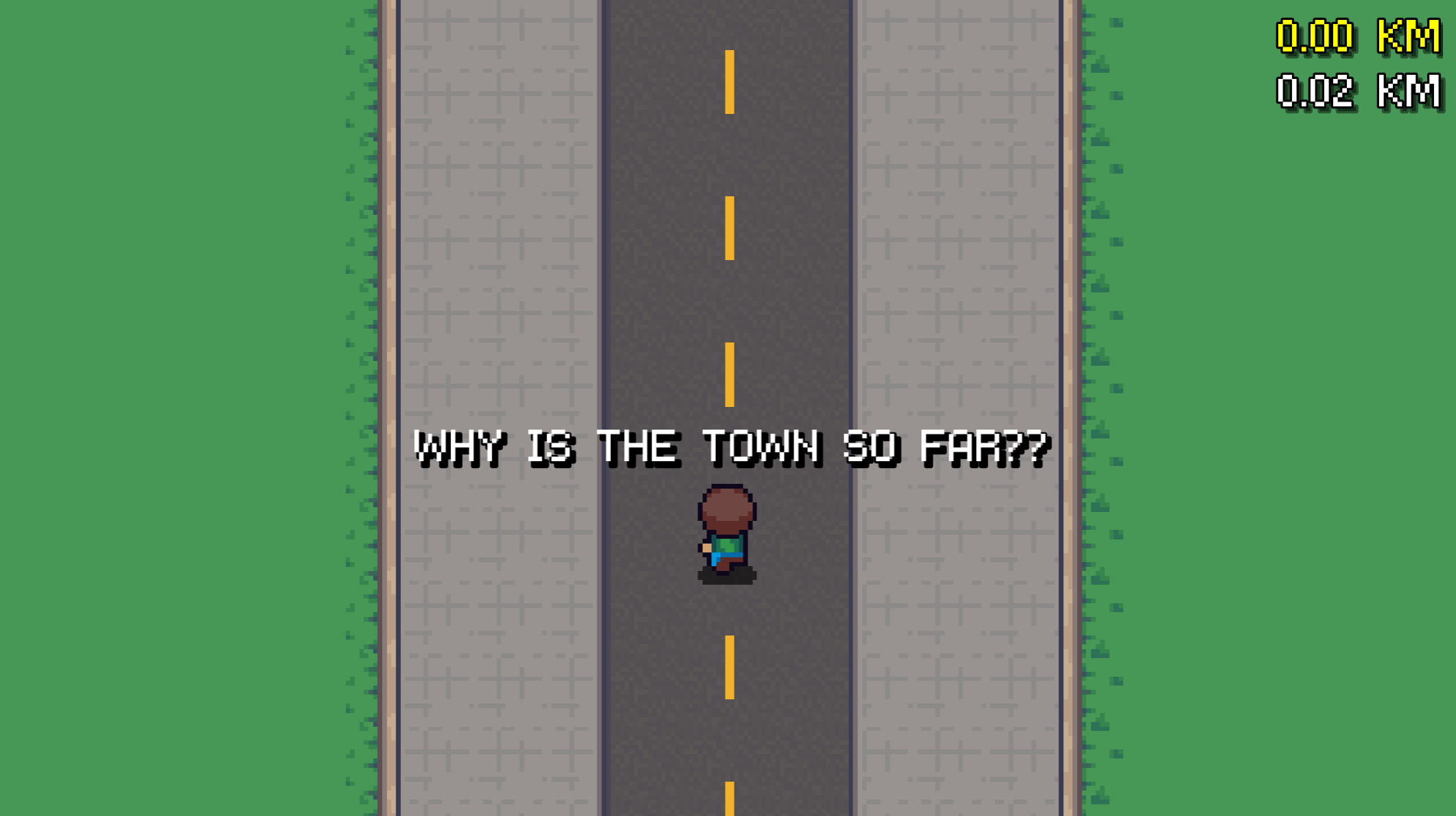 Man, you sure made this in small scope, at the same time by giving impactful gameplay and meaningful journey, I get ending unexpectedly by stopping player and come look at comment for answers. And dam, our game play are different but we sure did have the same vision for the game. At last, it is all coming down to the path of running on the same road before you make it either you fail or not. Anyway this is a meaningful short journey, I love it.